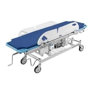 患者の搬送や計量ができるストレッチャ型の検定付体重計。